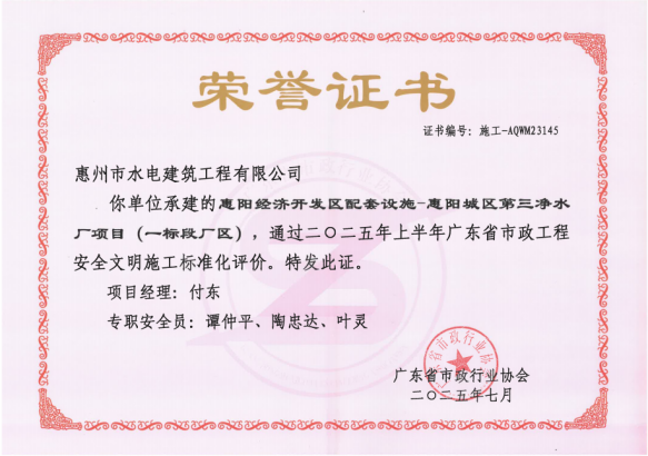 榮耀載入史冊(cè),奮斗仍在路上。展望未來,市水電公司將以此次榮譽(yù)作為新起點(diǎn),始終繃緊安全弦、筑牢文明線,持續(xù)完善企業(yè)安全文化、優(yōu)化標(biāo)準(zhǔn)化管理。市水電公司堅(jiān)信,唯有以更高的標(biāo)準(zhǔn)、更嚴(yán)的要求、更實(shí)的作風(fēng),才能確保每一個(gè)項(xiàng)目都能安全、優(yōu)質(zhì)、高效推進(jìn),才能在不斷提升工程建設(shè)品質(zhì)與運(yùn)營效益的同時(shí),為城市基礎(chǔ)設(shè)施現(xiàn)代化注入強(qiáng)勁動(dòng)力,為助力區(qū)域經(jīng)濟(jì)高質(zhì)量發(fā)展、建設(shè)美麗宜居城市持續(xù)貢獻(xiàn)國企力量與擔(dān)當(dāng)。