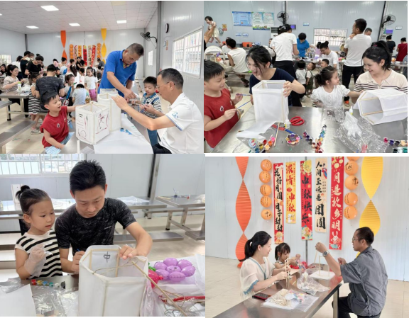 活動現(xiàn)場,22組家庭化身為“美食工匠”,開啟了冰皮月餅DIY之旅,從揉面、包餡到壓模,親子間的默契協(xié)作下,一枚枚印有“平山自來水廠”“城南水塔”“水泥船泵房”等公司發(fā)展史上標(biāo)志性建筑物圖案的月餅在掌心悄然成型。在活動的另一側(cè),二十余盞創(chuàng)意燈籠正悄然點(diǎn)亮,職工家庭以公司發(fā)展歷程為靈感,利用材料包中的竹篾、彩筆等素材,設(shè)計(jì)出“惠東供水60周年”“中秋快樂”等特色燈籠,將對企業(yè)發(fā)展的美好祝福融入其中。最終,所有家庭自制的月餅和燈籠作為活動紀(jì)念品被帶回家中,更成為傳遞企業(yè)溫情的獨(dú)特載體。