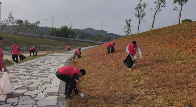 活動(dòng)中,黨員干部們身著紅色志愿服,沿河岸有序開(kāi)展清撿工作。大家不怕臟、不怕累,俯身細(xì)致翻檢草叢、河岸、親水平臺(tái)等角落,將散落的塑料瓶、食品包裝袋、枯枝落葉等各類(lèi)廢棄雜物一一拾起,并按要求進(jìn)行分類(lèi)裝袋。黨員們分工協(xié)作、干勁十足,忙碌的“紅馬甲”成為鰲溪河畔一道亮麗的風(fēng)景線。